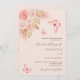 A peach background. Decorated with pink florals, roses, pampas grass and butterflies. Personalise and add your names and details details.