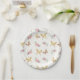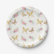 Sweet and lovely fluttering butterflies among pink orange watercolor woodland floral flowers on a plate
