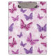 Seamless pattern of flying butterflies in shades of pinks and purples with white flowers over pale pink background. © and ® Bigstock® - All Rights Reserved.