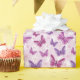 Seamless pattern of flying butterflies in shades of pinks and purples with white flowers over pale pink background. © and ® Bigstock® - All Rights Reserved.