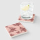 The coasters are gorgeous, a quality feel and heavy weight. They look like a precious archeological find. A rustic stone juxtaposed with a modern floral black and white print. I like the way the print goes slightly imperfect on the cut stone edges giving them a kind-of natural beauty.