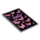 Beautiful pink butterflies flutter around this vibrant design in pink and purple hues. Unique modern wildlife illustrations. Personalise this funky pop art notebook by using the template. Original artwork by artist Catherine Sweetman