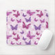 Seamless pattern of flying butterflies in shades of pinks and purples with white flowers over pale pink background. © and ® Bigstock® - All Rights Reserved.