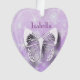 On the first side of this pretty purple and white ornament is a butterfly sitting on a snowflake. On the back you can add a personal message to whoever you are buying it for.