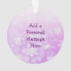 On the first side of this pretty purple and white ornament is a butterfly and white snowflakes. On the back you can add a personal message to whoever you are buying it for.