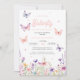 Butterfly Pink Blue Wildflowers Floral Baby Shower Invitation