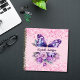 A girly pink background decorated with a purple butterfly, pink and purple flowers, pink confetti. Personalise and add your name.