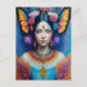 An image of a butterfly princess with tiny crown. This is an AI generated artwork with a floral theme.