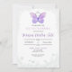 Simple, elegant lavender butterfly- themed Quinceañera invitation. The subtle floral background creates a garden-like border for the important information guests need to know. The back can be personalised with a picture of your beautiful birthday girl. The silver tiara on the watercolor open-winged butterfly has the Roman numerals "XV" to represent the young lady's 15 years of life.