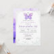 Una invitación para la Quinceañera simple y elegante. Presentando una mariposa lila con corona de plata rodeada con un borde de jardín que permitirá que sus invitados fácilmente encuentren toda la información necesaria para su gran evento. Los números Romanos "XV" representan las 15 primaveras de su cumpleañera. El lado trasero es el lugar perfecto para subir una foto de la bella Quinceañera.