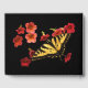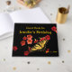 Easily personalise or remove the text on this lovely birthday party guest book which features a yellow and black Tiger Swallowtail butterfly on red and pink Calibrachoa flowers.