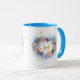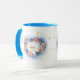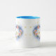 Personalised Whimsical Butterfly & Rose Heart Mug - Custom Monogram Gold Initial Name Coffee Cup - Enchanted Blue and Pink Two-Tone Mug.