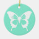 Butterfly sketch, aqua and white ceramic tree decoration