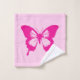 Towel set in digital sketches of assorted butterflies adapted from vintage illustrations, and digitally coloured - deep fuchsia pink on a light pink background