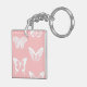 Butterfly sketch, shell pink and white key ring