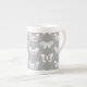 Butterfly sketch, silver grey and white bone china mug