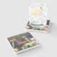 The coasters are gorgeous, a quality feel and heavy weight. They look like a precious archeological find. A rustic stone juxtaposed with a modern floral black and white print. I like the way the print goes slightly imperfect on the cut stone edges giving them a kind-of natural beauty.