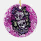 Butterfly sugar skulls on pink wood base. ceramic tree decoration