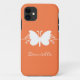 Sweet and simple Butterfly Swirls Case-mate iPhone 5 Barely There Case in orange featuring a lovely butterfly silhouette and swirl border. This lovely iPhone case may be customised with the personalised text of your choosing. This pretty butterfly iPhone skin is girly and stylish and perfect for protecting your phone! Click on the "Customise It" button to additional personalisation options.