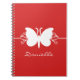 Sweet and simple Butterfly Swirls Notebook in dark red featuring a lovely butterfly silhouette and swirl border. This lovely notebook may be customised with the personalised text of your choosing. This pretty butterfly notebook is girly and stylish and can be used to jot down notes or other fun stuff! Click on the "Customise It" button to additional personalisation options.