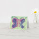 Blank notecard with a beautiful, layered watercolor of a butterfly in purples, blue and turquoise on the front front. Art by Maeve & Charlotte.