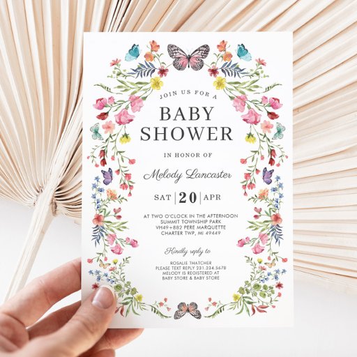 Butterfly Wildflower Baby Shower Invitation