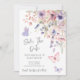 The card features watercolor wildflowers and greenery with fluttering pink and purple butterflies. Names and wedding date appear in a mix of handwritten script and clean serif fonts for a modern yet timeless look.