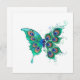 Artistically drawn, fictional, green, detailed butterfly with green, beautiful, peacock feathers on white background.