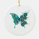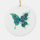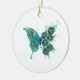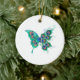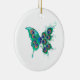 Butterfly with Green Peacock Feathers Ceramic Ornament
