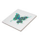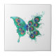 Butterfly with Green Peacock Feathers Ceramic Tile