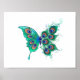 Butterfly with Green Peacock Feathers Poster