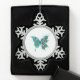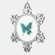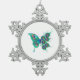 Butterfly with Green Peacock Feathers Snowflake Pewter Christmas Ornament