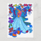 Butterfly Woman in Blue Dress Surrounded by Flowers with Butterfly