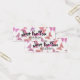 Butterfly'Just For You' Wedding favour Gift tag, featuring the words "Just For You" in a fancy swirly font. The bride and grooms names and wedding date are printed below the message.A background of pink and purple butterflies is printed behind teh wording. you can add your own thank you message or other wording. alternative paper and colours available. You will need to punch a hole in one corner of the card with a paper punch, thread through some ribbon and tie to your favour box.