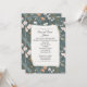 Ivory curled paper on a butterfly and wildflower pattern with dark sage green background for a wedding vow renewal invitation.