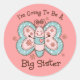 Adorable BUTTERFLY FUTURE BIG SISTER design features a cute little pink and blue cartoon butterfly with her arms held out excitedly saying, I'M GOING TO BE A BIG SISTER. She's surrounded by little flowers and she has heart on her chest. Perfect to let the world know another baby is on the way and show who's who in your family. On babies, toddler and kids T-shirts, infant bodysuits, sweatshirts, keepsakes and more! PinkInkArt original!