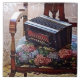 Button Accordion on Chair With Flowered Seat Ceramic Tile