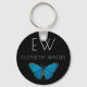 BLUE BUTTERFLY CLASSIC ROUND BUTTON KEYRING : CUSTOMIZABLE NAME