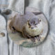 Small-clawed otter lying on stone. Latin name Amblonyx cinerea.