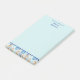 A pattern made up of needles with orange and blue buttons decorates the edge of this easy to customise post-it notepad.