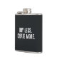 The flask itself is fine. It’s a cheap flask, obviously bought in bulk, however am prepared to overlook that. Given that it is a personalized item, I would have liked to have seen gift boxing instead of the generic packaging. Terrible printing, and/or quality. It’s a cheap, tacky vinyl. It is not cut straight and is also applied in a way that it is overhanging the bottom, causing the glue to catch on items and it will eventually roll and tear, damaging the wrap.