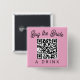 Buy the Bride a Drink QR Code button. This fun and interactive button is perfect for any bachelorette party or bachelorette weekend. The design features a prominent QR code that can link to a Venmo/Cash App for drinks! The phrase "Buy the Bride a Drink" is displayed in elegant script typography with a customizable QR code. The soft pink background adds a touch of sweetness to this modern and engaging accessory, making it a memorable addition to the bride-to-be's bachelorette party. Whether you are at a bar, sporting event or concert, this is sure to be a fun accessory to wear!