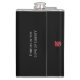 The flask itself is fine. It’s a cheap flask, obviously bought in bulk, however am prepared to overlook that. Given that it is a personalized item, I would have liked to have seen gift boxing instead of the generic packaging. Terrible printing, and/or quality. It’s a cheap, tacky vinyl. It is not cut straight and is also applied in a way that it is overhanging the bottom, causing the glue to catch on items and it will eventually roll and tear, damaging the wrap.