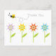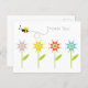 A Thank You postcard with a delightful burst of colour featuring red, blue, purple, and yellow dainty daisy flowers. A cheerful bumblebee is buzzing above with the words - Thank You! – a perfect way to express appreciation. An original Mango Moon Studio Illustration.