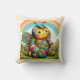 This heartwarming pillow presents a patchwork bee with a friendly smile, exuding a sense of joy and playfulness. The bee's body is a mosaic of vivid, quilted patterns, resembling a handcrafted textile toy. Radiant rainbows arc in the background, adding a layer of dreamlike charm to the scene. The bee is nestled among a variety of stylised, colourful flowers that seem to dance in the breeze, creating an atmosphere of a cheerful, enchanted garden. The intricate details of the bee's wings and the diverse floral elements make this illustration an ideal visual treat for products aimed at children and families, promising to spread happiness and spark imagination.
