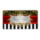Romantic Vintage Look Black & White Stripe, Black & Gold Damask, Red Ribbon - Wedding Wine Label / Event Wine Label