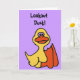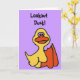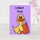 Funny cartoon duck birthday card says lookout duck! Inside it says What were you expecting..a chicken?
