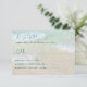Beach wedding reply cards with guest number wording. Seashore background with dark teal blue text. This design is part of the By the Sea wedding collection.