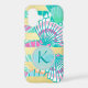 Here is a pretty seaside theme phone case for her! It features a beautiful teal green, pink and white seashell pattern laid over a burnished gold stripe background. The shell pattern is repeated in the alternating stripes. Your monogram is in sea green within a semi transparent blue circle which is lined with faux glitter diamond images. Gorgeous, elegant, and glamorous! *Please note - the glitter is simulated in the design. The case does not contain actual glitter or metallic substance.