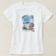 This beautiful woman's T-shirt includes a painting created by world renown artist Danny Hahlbohm. This piece of art is sure to be a collectors item. It depicts a painting created by Danny Hahlbohm titled, "By the Seashore" with shells, mermaids, waves, beach and seagulls.